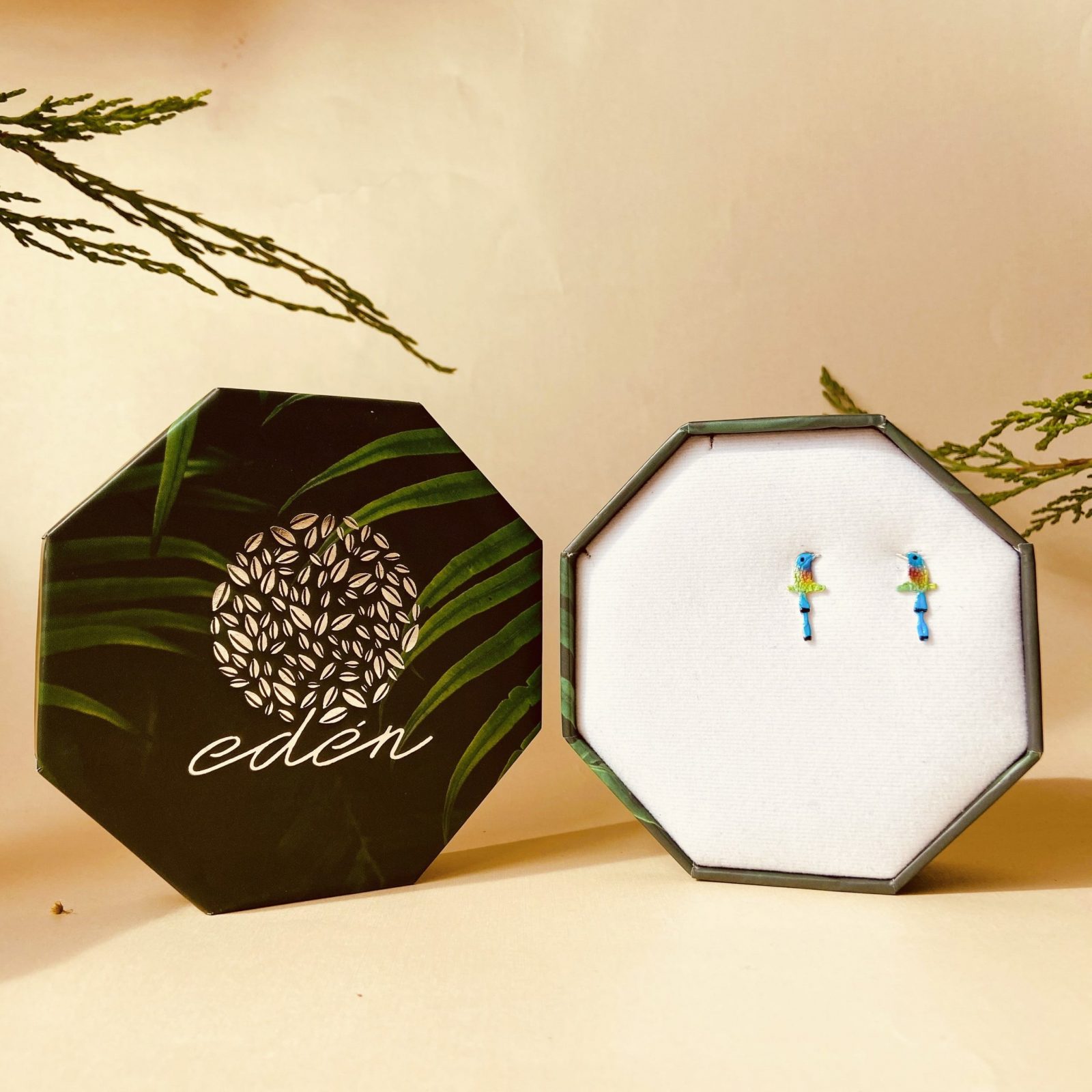 Material: Elaboradas en plata sostenible ley 950, pintadas a mano con pigmentos naturales.